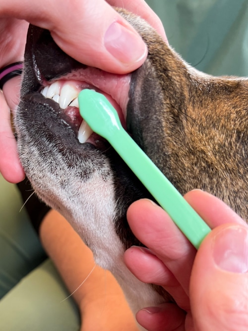 - Start regular at-home dental care with regular tooth brushing, dental treats, water additives, or other at-home veterinary recommended products. Look for the Veterinary Oral Health Council (VOHC) seal on the available dental products.