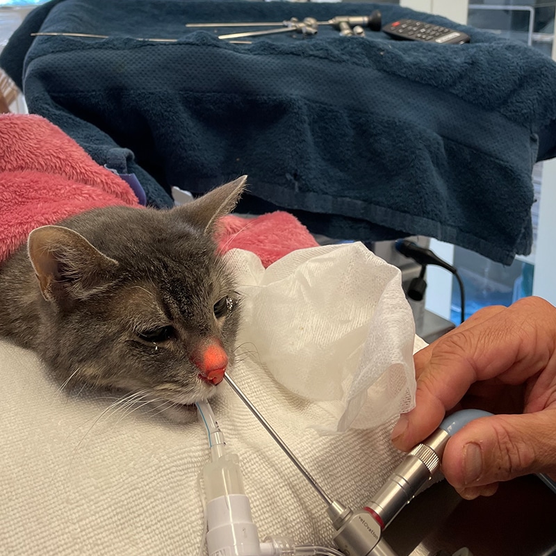 A rhinoscope is a specialized scope for examining the nasal passages and upper airway. It helps us identify obstructions, infections or foreign bodies without the need for invasive surgery.