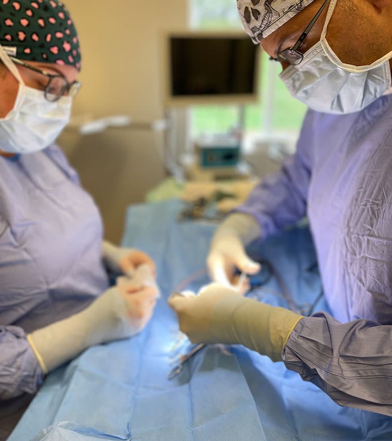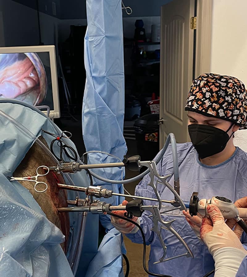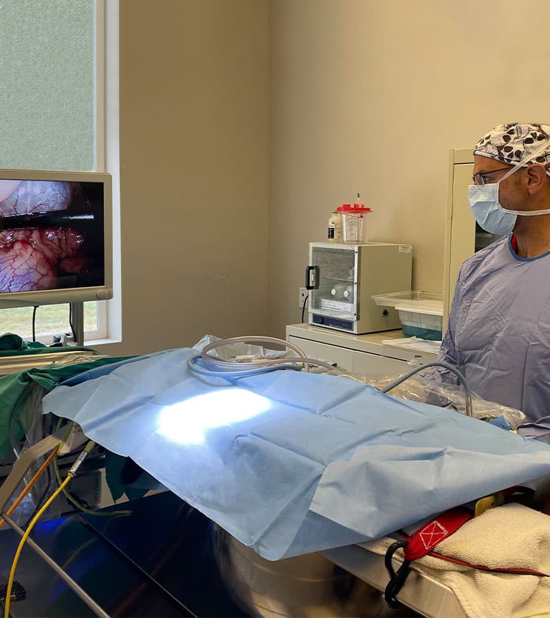 This is one of the biggest benefits of minimally invasive surgery! We recommend 2-3 days of reduced activity. However, they will still need to avoid baths and swimming for 7-14 days.